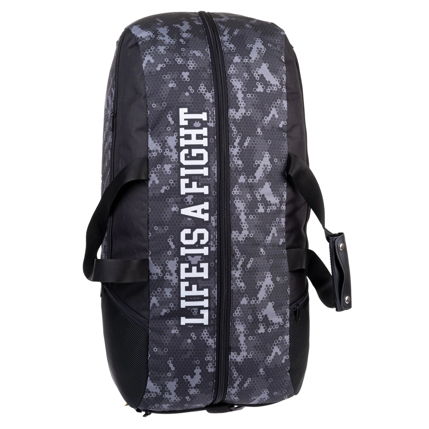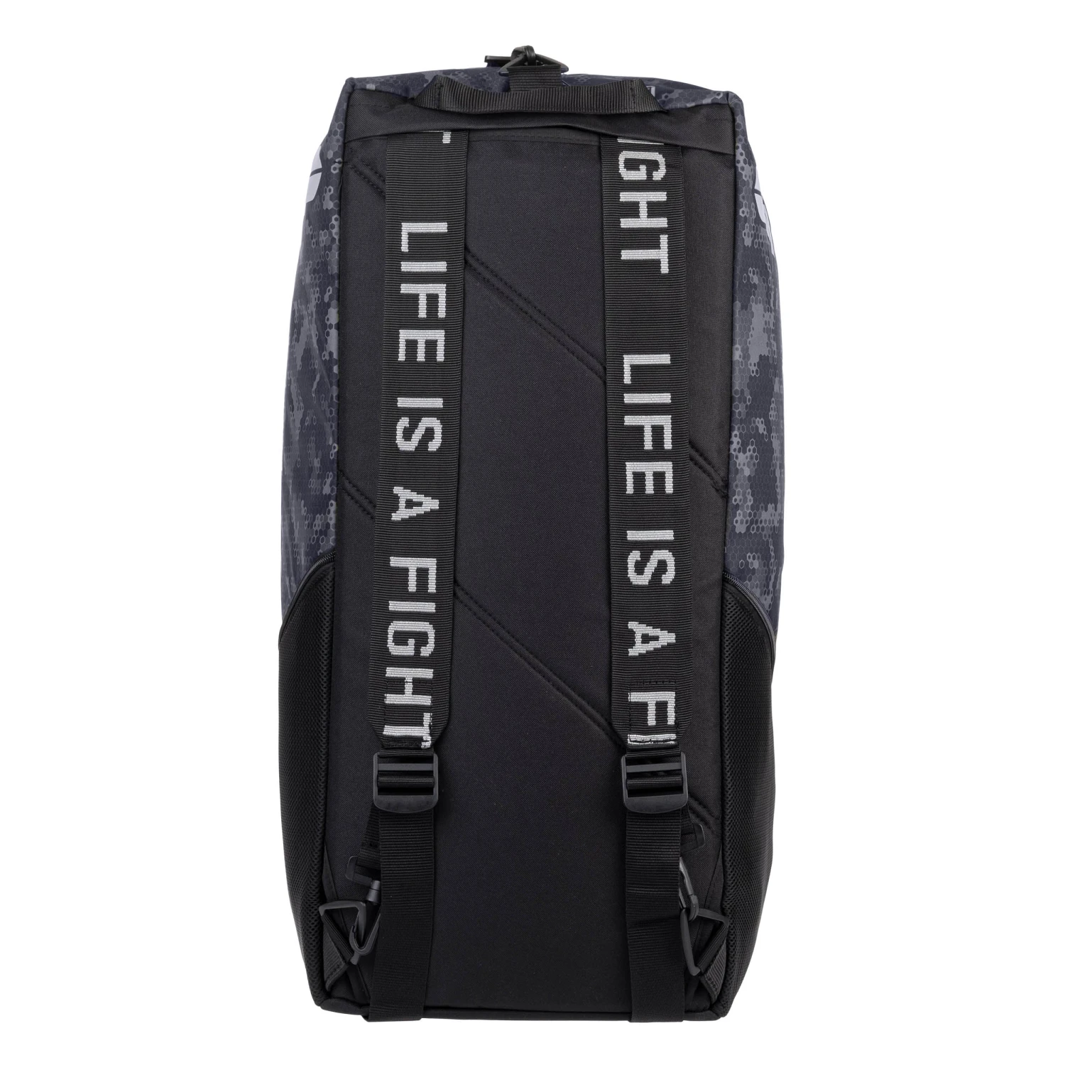 Fighter’s lightweight and universal sports bag made in Europe. It is made of waterproof polyester. The bag has two pockets on each side and more pockets inside. The bag’s size is perfect to fit all equipment you need for any type of training. The bag can be carried in 3 ways: in hand, over the shoulder and as a backpack. The back straps are in a hidden pocket at the bottom of the bag. The bottom of the bag is well padded. All print is sublimated!