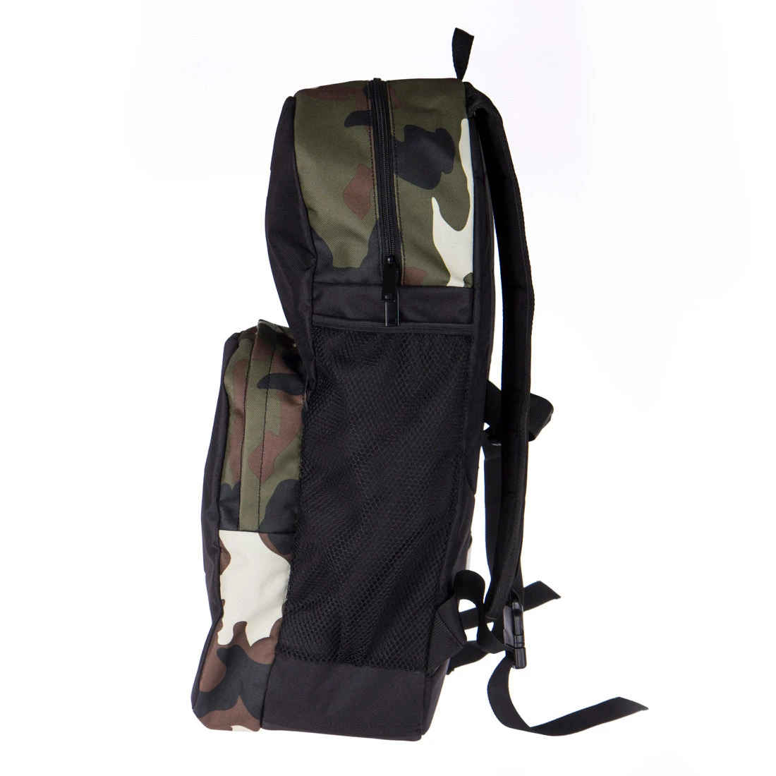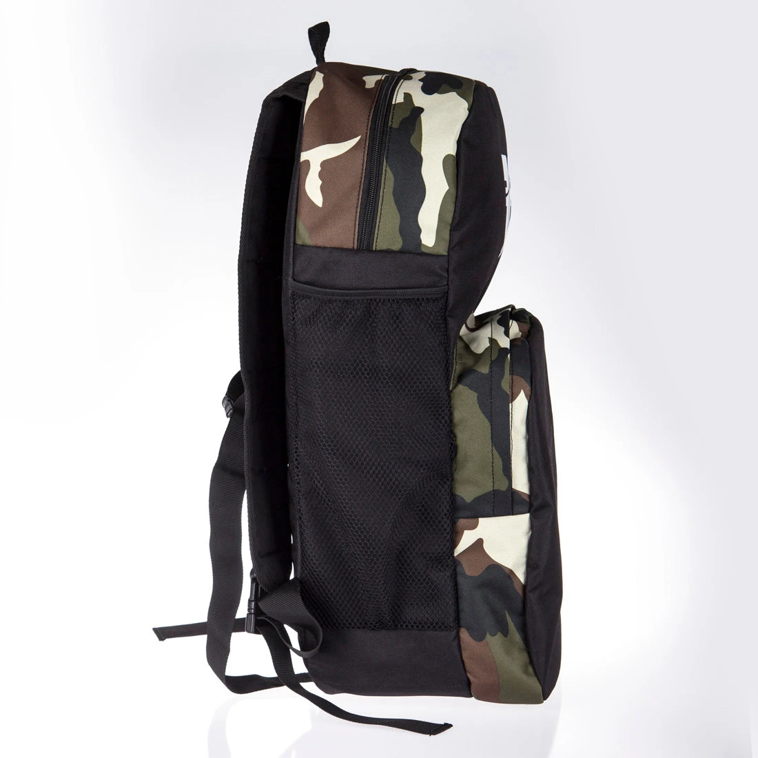 The Fighter backpack is made of a firm, anti-abrasion specially fabricated material. The backpack is composed of a main spacious pocket that is approximately 25 L large, and a front pocket, which holds up to 5 l of material, and on the side of the backpack are two pockets designed specifically for bottles of beverages. These large side pockets take up to 1.5 L bottles.