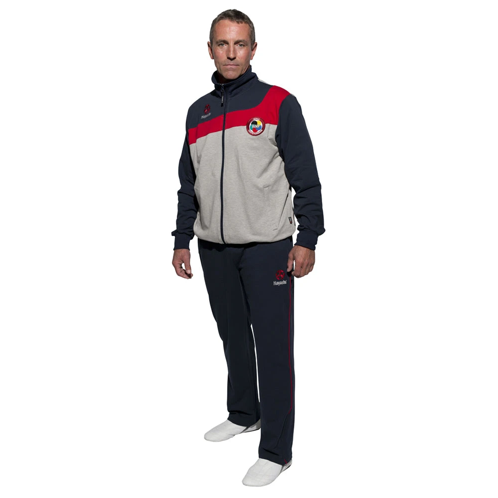 The TOP TEN High class processed fitness suit without lining. Jacket and pants have 2 open side pockets and carry both the TopTen patch. Jacket with elbow patches in sleeve color. Material: 95% cotton / 5% elastane.