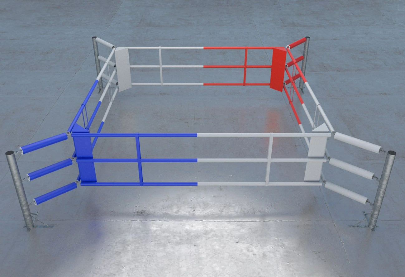 This is ideal boxing ring for boxing, kickboxing, thaiboxing and other ring sports. The poles of the boxing ring must be drilled to the floor. Ropes and all other items can be put on the ring without any other tools.