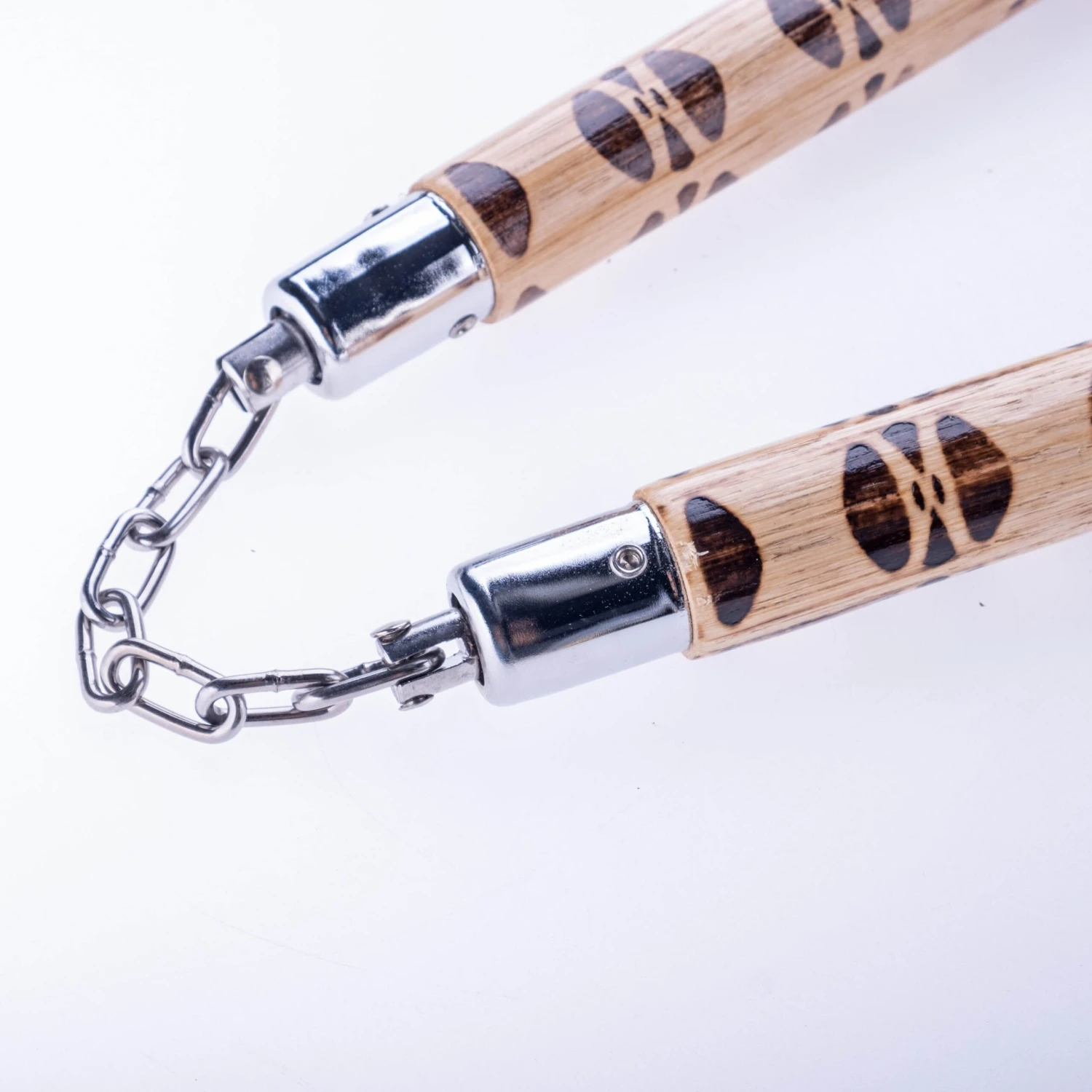 This classic nunchaku is expertly crafted from rattan with a brown finish and 31 cm long, 2.7 cm in diameter. It’s connected with a 12 cm long chain for a secure grip. Perfect for martial arts practitioners and collectors alike.