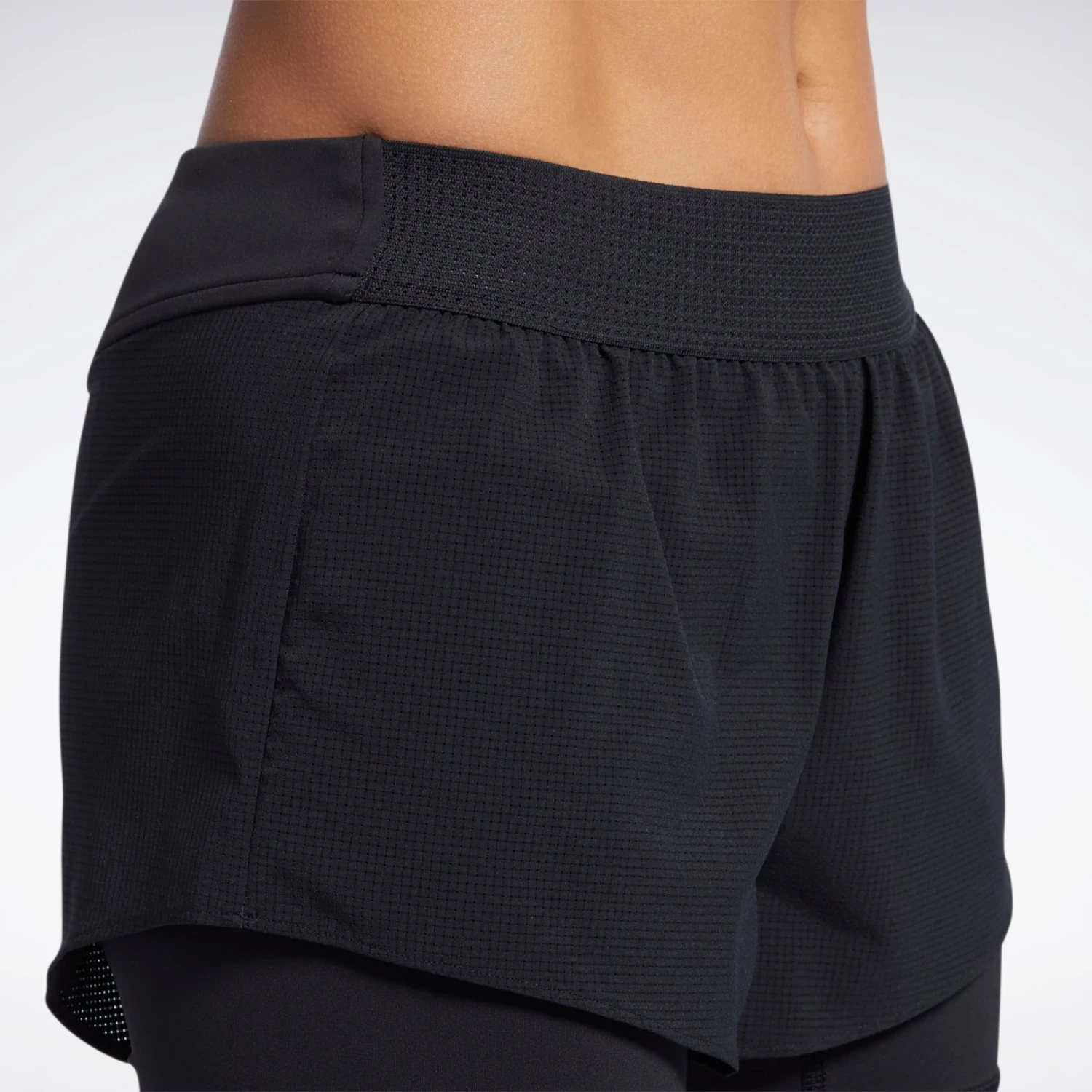Lunge and jump without worry in these women’s training shorts. They combine compression-fit inner shorts with slim-fit outer shorts. Sweat-wicking fabric helps you stay dry so you can focus on performing your best.
