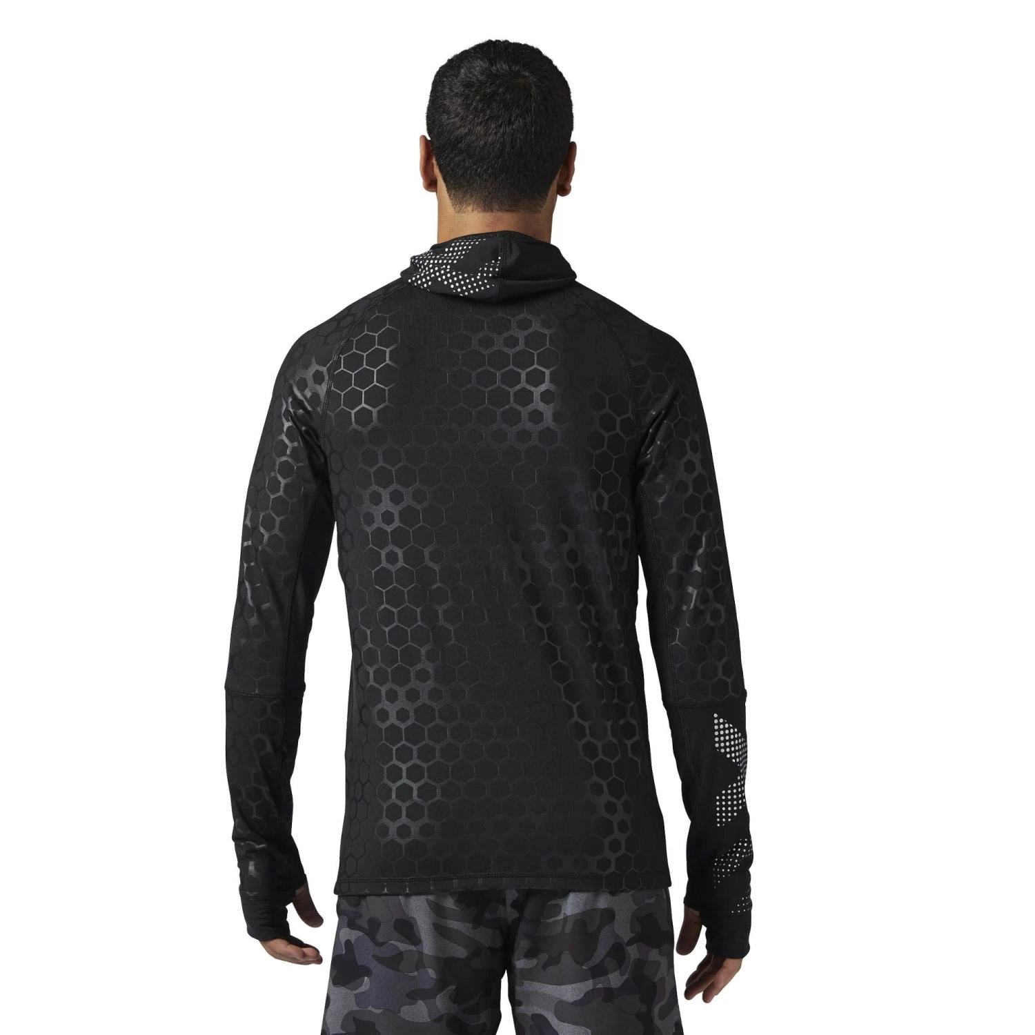 Meet your new first defence against chilly weather workouts. This HEXAWARM Scuba Hoodie’s supportive fit is sweat wicking and brushed for skin-side softness. Embossed graphics add subtle interest by day while reflective features brighten visibility at night. Thumb holes on the sleeves anchor this shirt’s place in full mobility warmth.